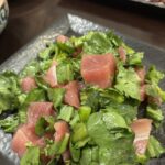 またまたおつまみblog 2025年12月4日 最終更新日時 : 2025年12月4日 MARK Salon すごくフレッシュな春菊が実家から届いて、 火を通してしまうのがもったいないので、 マグロと春菊のレモン胡椒和えを作りました。 ごま油と麺つゆ少々、そして最近ハマってるレモン胡椒🍋 爽やかな風味で、つまみに最高です🍺