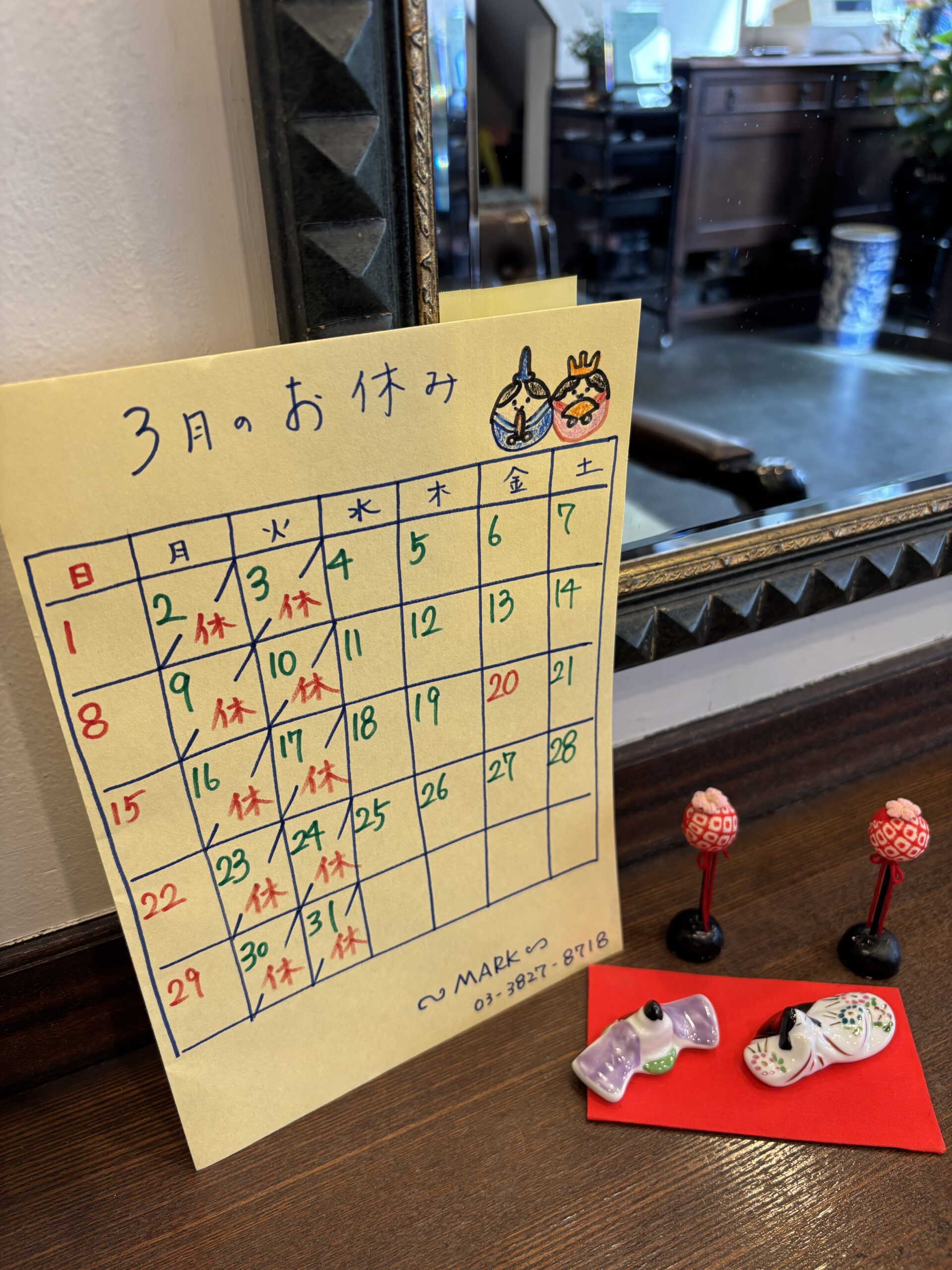 3月のお休み 2026年2月27日 最終更新日時 : 2026年2月27日 MARK Salon 少しずつ暖かい日も増えてきて、春ももうすぐやってきそうです。 暖かくなると、どこかお出掛けしたくなりますね! そんなお出かけまえに髪を切って✂️みてはいかがですか? 以下、3月のお休みのお知らせです。 お電話にてご予約お待ちしております。 よろしくお願いします🙇♀️